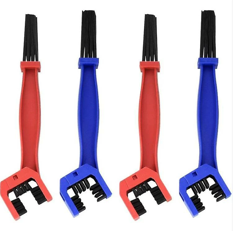 Package contains 2 blue and 2 red motorcycle chain brushes.