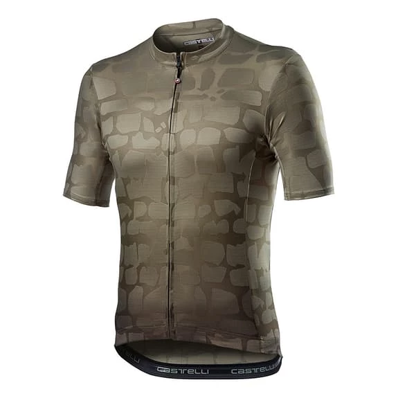 The Castelli Pavé short sleeve jersey is a high performance jersey with a print inspired by the cobbled sections that once formed part of many stages in cycling competitions. It is a very technical garment, made with highly breathable fabrics for adequate ventilation during sports practice. The blurred print, made by sublimation printing on a jacquard fabric, achieves an effect of depth and relief.