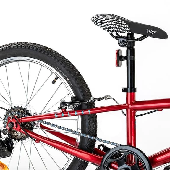 The Conor – WRC Galaxy 20″ children’s bicycle has been built by the Conor staff. The frame and fork are made of steel, which makes them lightweight. Thanks to the Shimano Tourney TY200 1×7 speed transmission and the Conor 20″aluminium wheels, the bike provides excellent performance during sport. The rigid steel fork gives you security and control so you can enjoy your routes to the fullest. The geometry is designed to suit both male and female morphology. It combines a sophisticated structure in the tubes that adds efficiency, as well as a plus of aerodynamics thanks to the profiles that adapt.