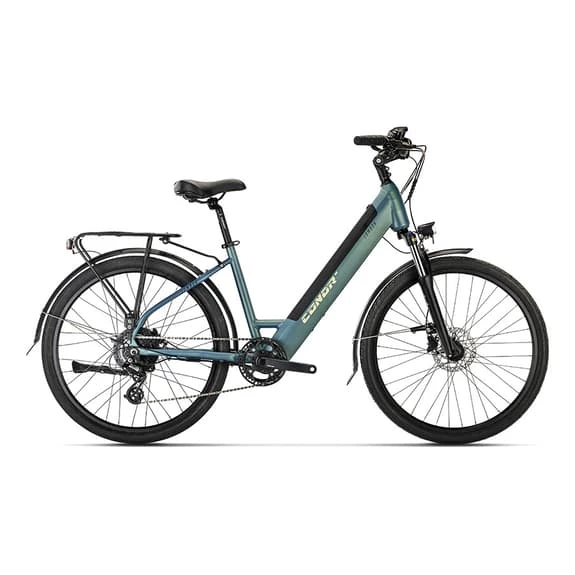 The Conor – WRC Lombok E-City 26″ electric bike was built by Conor staff. The frame and fork are made of aluminium, which makes them lightweight. Thanks to the Shimano Altus M310 1×8 speed transmission and Conor aluminium wheels, the bike provides excellent performance during sport. The HL 187D AMS/MLO Disc fork, offers you security and control so you can enjoy your routes to the fullest. The Bafang RM G020.250.DC 250W 45Nm motor provides power for when you need help on your longer routes. The geometry is designed to suit both male and female morphology. It combines a sophisticated structure in the tubes that adds efficiency, as well as a plus of aerodynamics thanks to the profiles that adapt.