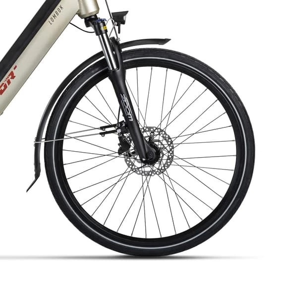 The Conor – WRC Lombok E-City 26″ electric bike was built by Conor staff. The frame and fork are made of aluminium, which makes them lightweight. Thanks to the Shimano Altus M310 1×8 speed transmission and Conor aluminium wheels, the bike provides excellent performance during sport. The HL 187D AMS/MLO Disc fork, offers you security and control so you can enjoy your routes to the fullest. The Bafang RM G020.250.DC 250W 45Nm motor provides power for when you need help on your longer routes. The geometry is designed to suit both male and female morphology. It combines a sophisticated structure in the tubes that adds efficiency, as well as a plus of aerodynamics thanks to the profiles that adapt.