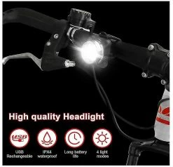Unbranded Bike Light Usb Rechargeable, Led Bicycle Headlight Front, Ipx6 Waterproof, 3 Light Mode – For Commuters, Road Cyclists Mountain Bikers(black)