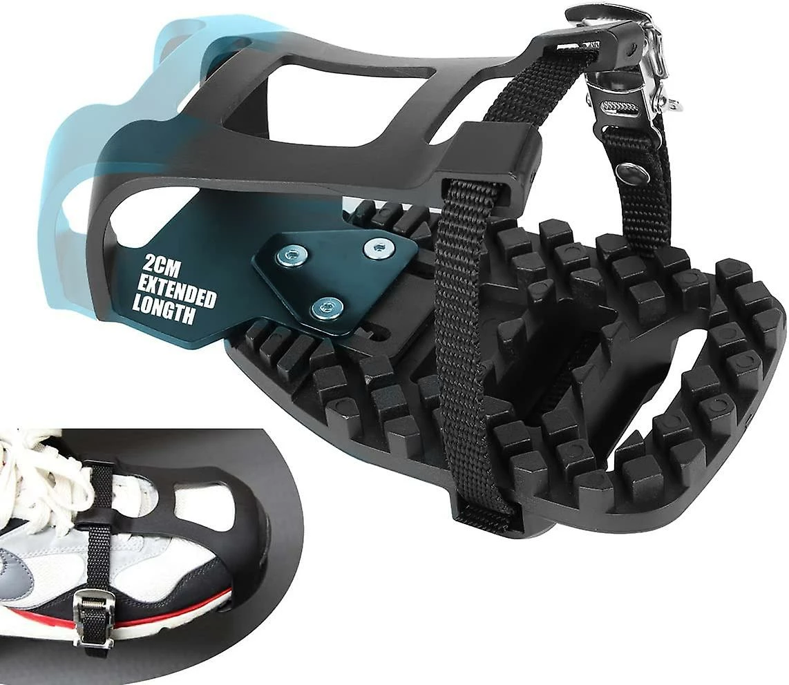 [Excellent Non-Slip] The toe cages are made of enforced engineering heavy-duty plastic. In order to prevent the toe cage pedals from breaking, the pedal cages adopt anti-skid particle bumps to increase the anti-skid force area, the diamond shape teeth prevent your sneakers from sliding on the pedals, effectively preventing the toe clip pedals from falling off and straining the foot, making pedaling much easier