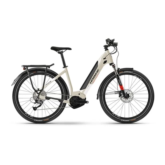 The Haibike Trekking 4 Low electric bike has been built by Haibike staff. The frame and fork are made of aluminium, which makes them resistant. Thanks to the Shimano Altus M2000 1×9 speed transmission and 27.5″ Schürmann Yak25 wheels, the bike provides excellent performance during sport. The 250W Yamaha PW motor gives you power for when you need help on your longer rides. The geometry is designed to suit both male and female morphology. It combines a sophisticated structure in the tubes that adds efficiency, as well as a plus of aerodynamics thanks to the profiles that adapt.