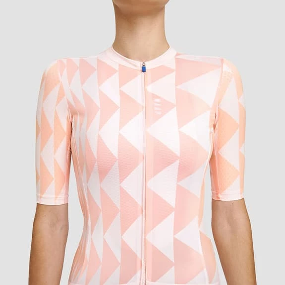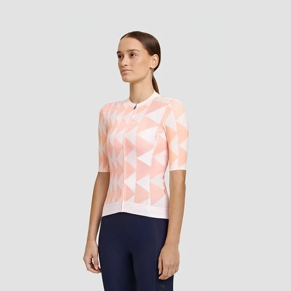The MAAP Loop Pro women’s short sleeve jersey is made from mostly recycled materials, as well as technical and lightweight fabrics that are sustainably manufactured under the bluesign system. Moisture-wicking technology enhances breathability, while Hex-tech sleeves in stretchy, aerodynamic fabric provide a precise fit, run after run. The Phase Pro Hex jersey features graphics inspired by speed in motion.