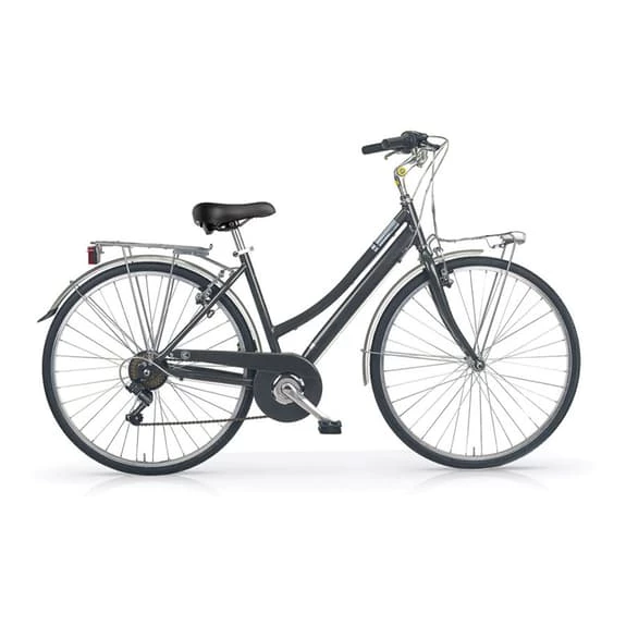 The MBM Central 28″ 6V urban bike for women has been built by MBM staff. The frame and fork are made of aluminium, which makes them resistant. Thanks to the Shimano TY21 with 1×6 speed transmission and the 28″ disc brake pad, the bike provides excellent performance during sport. The high-strength steel fork gives you security and control so you can enjoy your routes to the fullest. The geometry is designed to fit the female morphology. Basket not included.