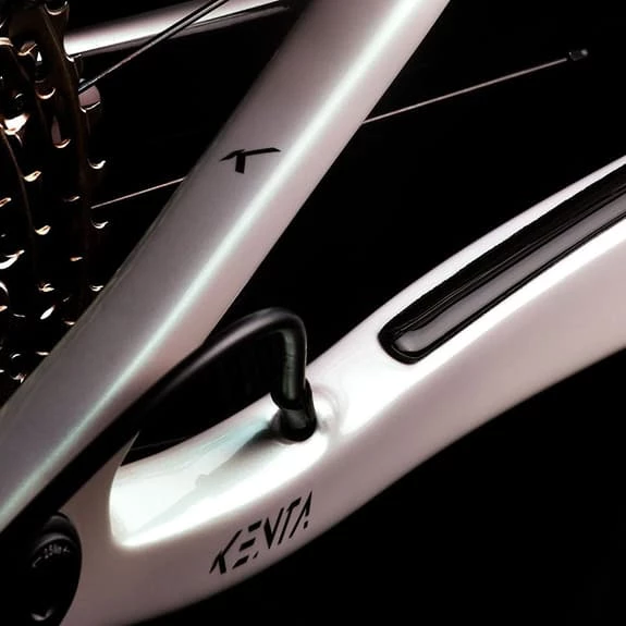 The MMR Kenta MTB is born and tested in the extreme demands of the World Cup circuits, the Kenta represents the ultimate weapon for high competition. The frame, in the highest quality monocoque carbon (Toray T700), incorporates Flexion for Pivot F4P technology, which eliminates the horst link pivot thanks to the elasticity of the chainstays and stays. With a stroke close to 100mm, the swingarm’s behavior is characterized by a kinematic curve that minimizes pedaling interference and maximizes performance.