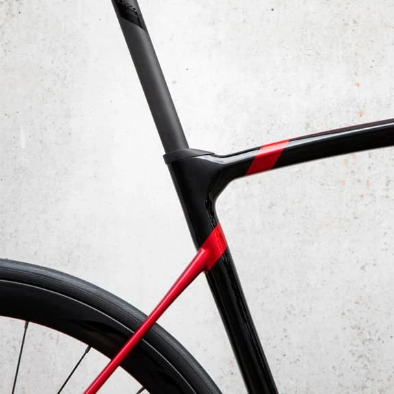 The rear and top of the bike are fully dedicated to comfort: a thin rear triangle, 27.2 mm seatpost and top curved frame tube. The wide bottom bracket, diagonal tube, wide steering tube and reactive fork have been designed to convert your power to speed. Each watt = maximum speed.