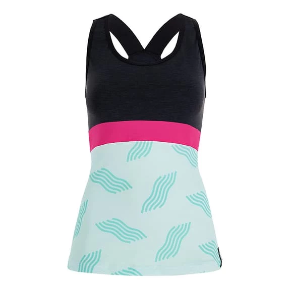 The Santini Scia Dune Tank Top with Straps has crossed elastic straps to adapt to the contours of the body.