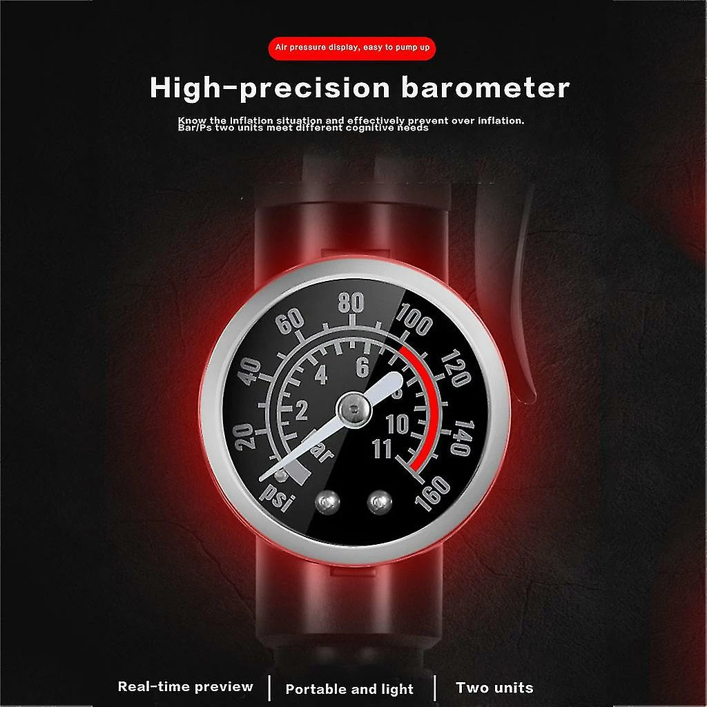 Max capacity can reach 160 psi, powerful enough to inflate your bike tire.