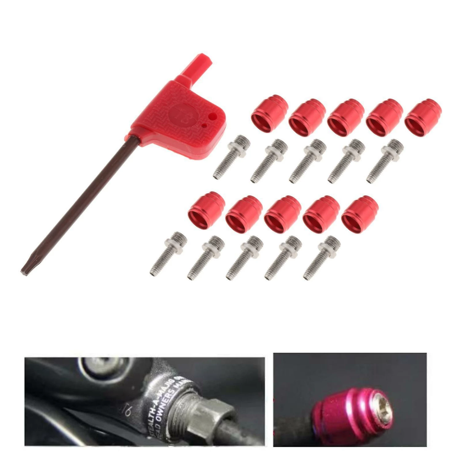Materials: Aluminum Alloy + Stainless Steel, anti-rust and good toughness, durable to use.Compatibility: Suitable for , Avid hydraulic brakes.This kit is necessary for the brake lever with “-A-MAJIG” letters, it’s compatible for normal , Avid brakes too.Perfectly fits the disc brake hose(5.0mm*2.0mm), no oil leakage.Includes10 X Olives, 10 X Inserts,1 X T8 Spanner.