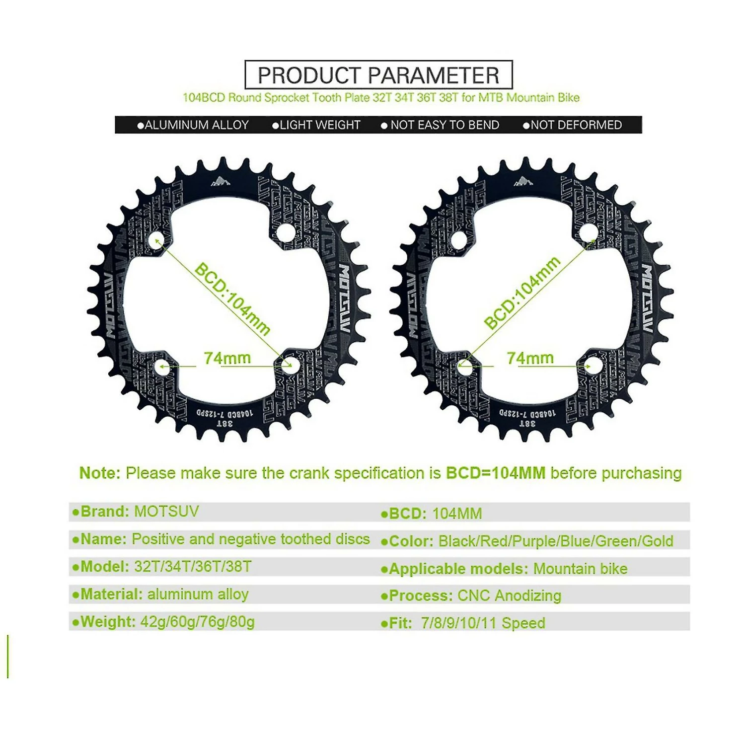 Unbranded 104bcd E-bike Chainring+adapter Compatible With Tongsheng Tsdz Crankset,red 36t