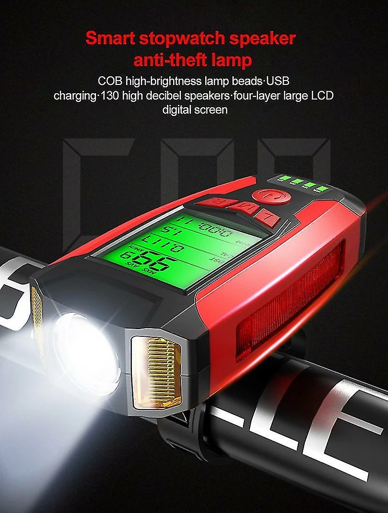 Unbranded Bicycle Lights Mountain Bike Headlight Strong Car Headlight With Horn Stopwatch Bicycle Night Light Bicycle Cycling Accessories