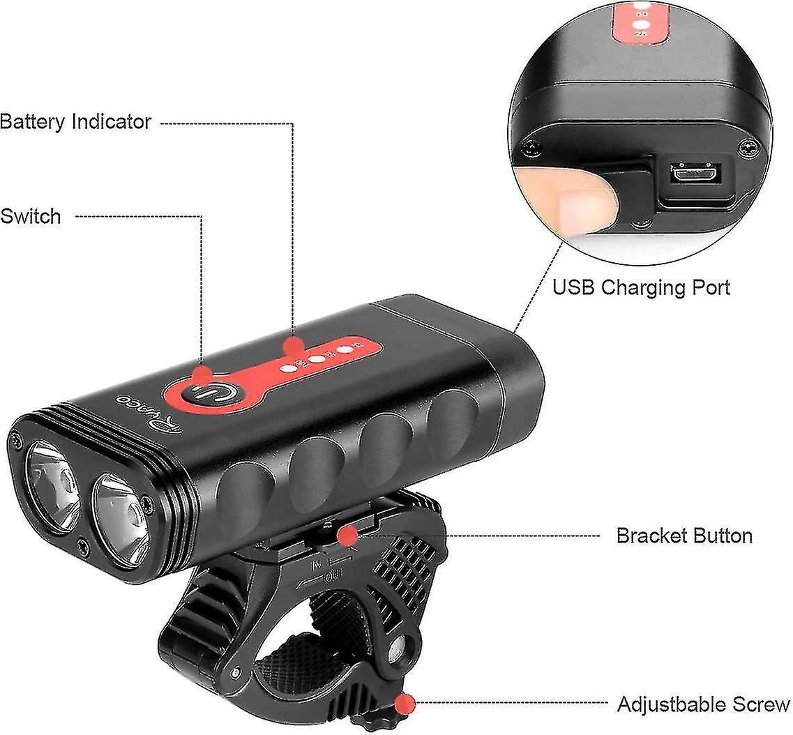 Unbranded Bike Light, Powerful 2400 Lumens, 4400mah, Bicycle Light Front Light Usb Rechargeable Led Headlight Lamp, 4 Light Modes, Waterproof Ip65 For Camping,