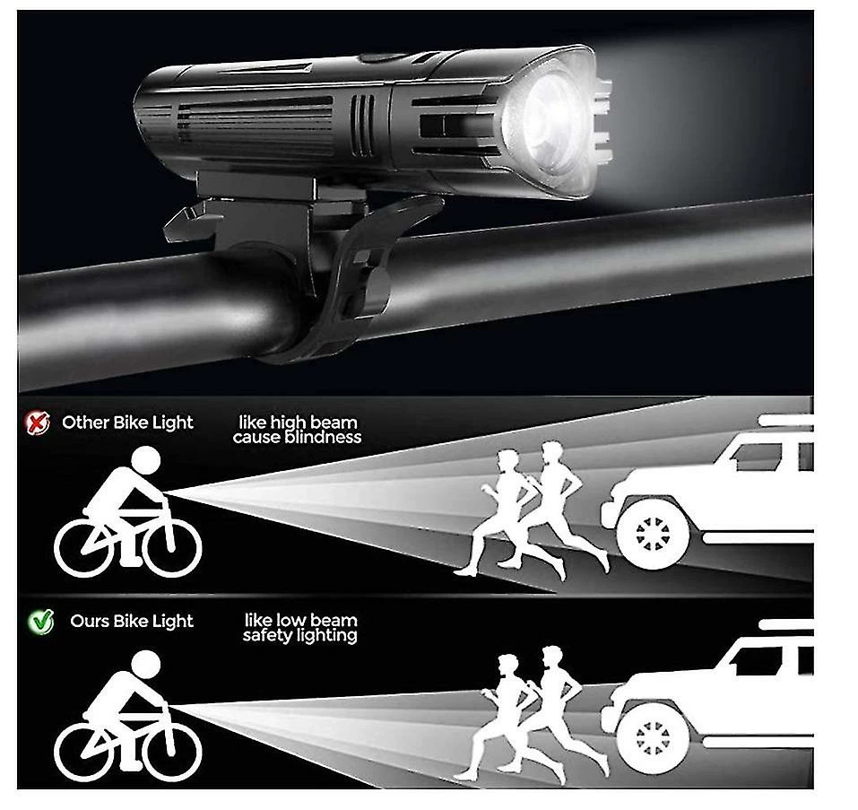 Unbranded Bike Light Set, Usb Rechargeable Waterproof Runtime 8+ Hours 2000 Lumen Super Bright Headlight Front Lights, 4 Light Mode Fits All Bicycles, Mountain,