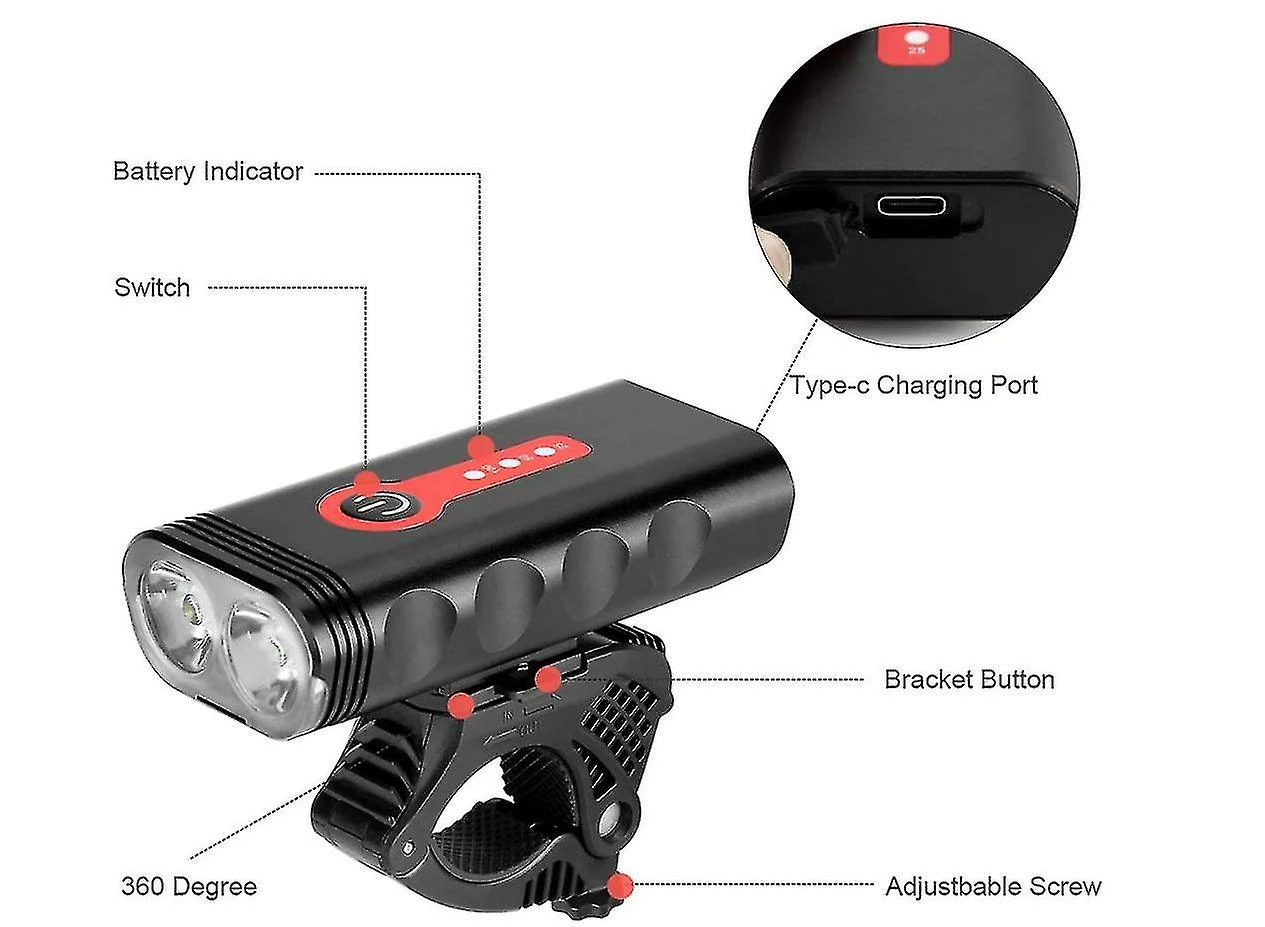 Unbranded Bike Light, Usb Rechargeable Bicycle Lights Headlamp Front Lamp, 2400 Lumen