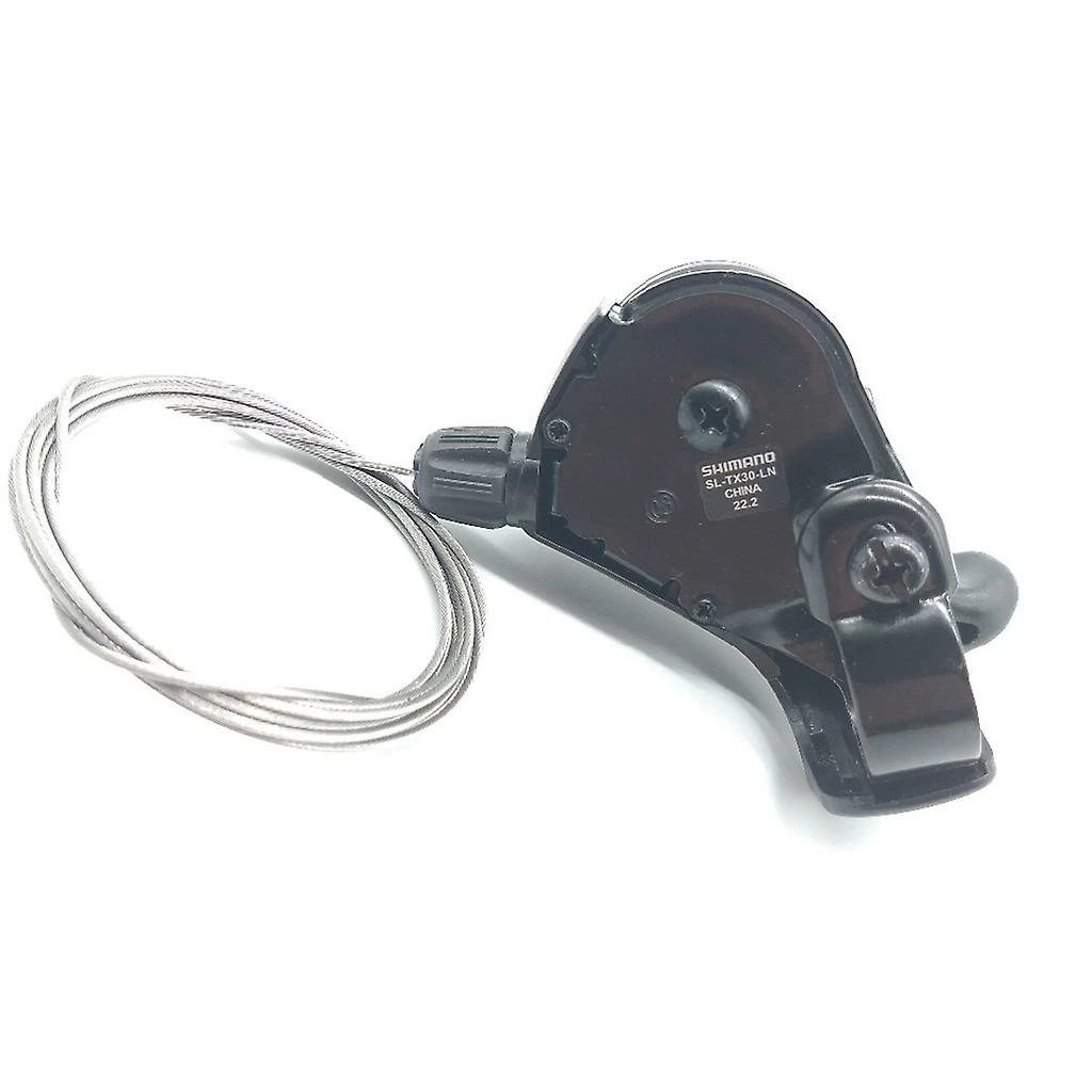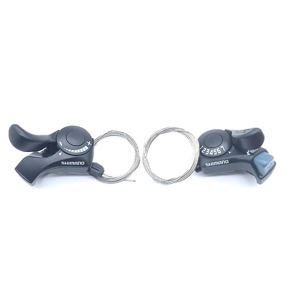 Right shifter is a trigger-type 7 speed shifter, with one lever for down-shifts and a thumb button for up-shifts.