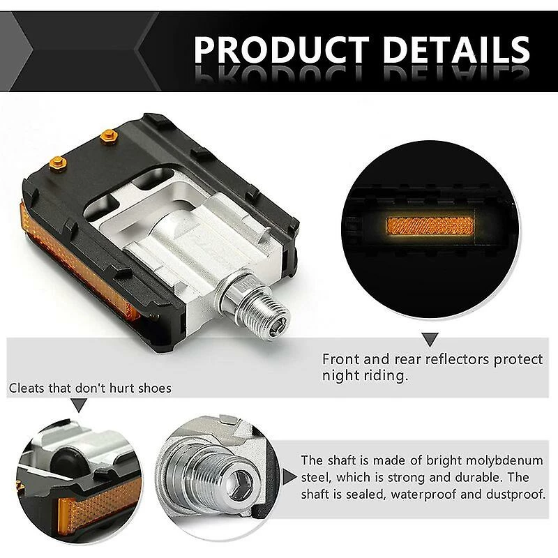 Wide range of applications: This flat bicycle pedal has a simple design and practical and a classic and exquisite appearance. Bike pedals are a perfect substitute or addition for all folding bikes, mountain bikes, touring and road bikes, and all bikes stored in places with limited space.
