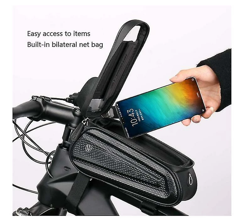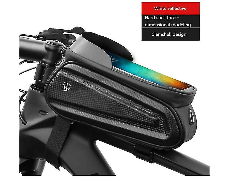 Unbranded Hard Shell Bike Bag Front Beam Bag Mountain Bike Mobile Phone Touch Screen Upper Tube Bag Saddle Bag Riding Equipment(black)