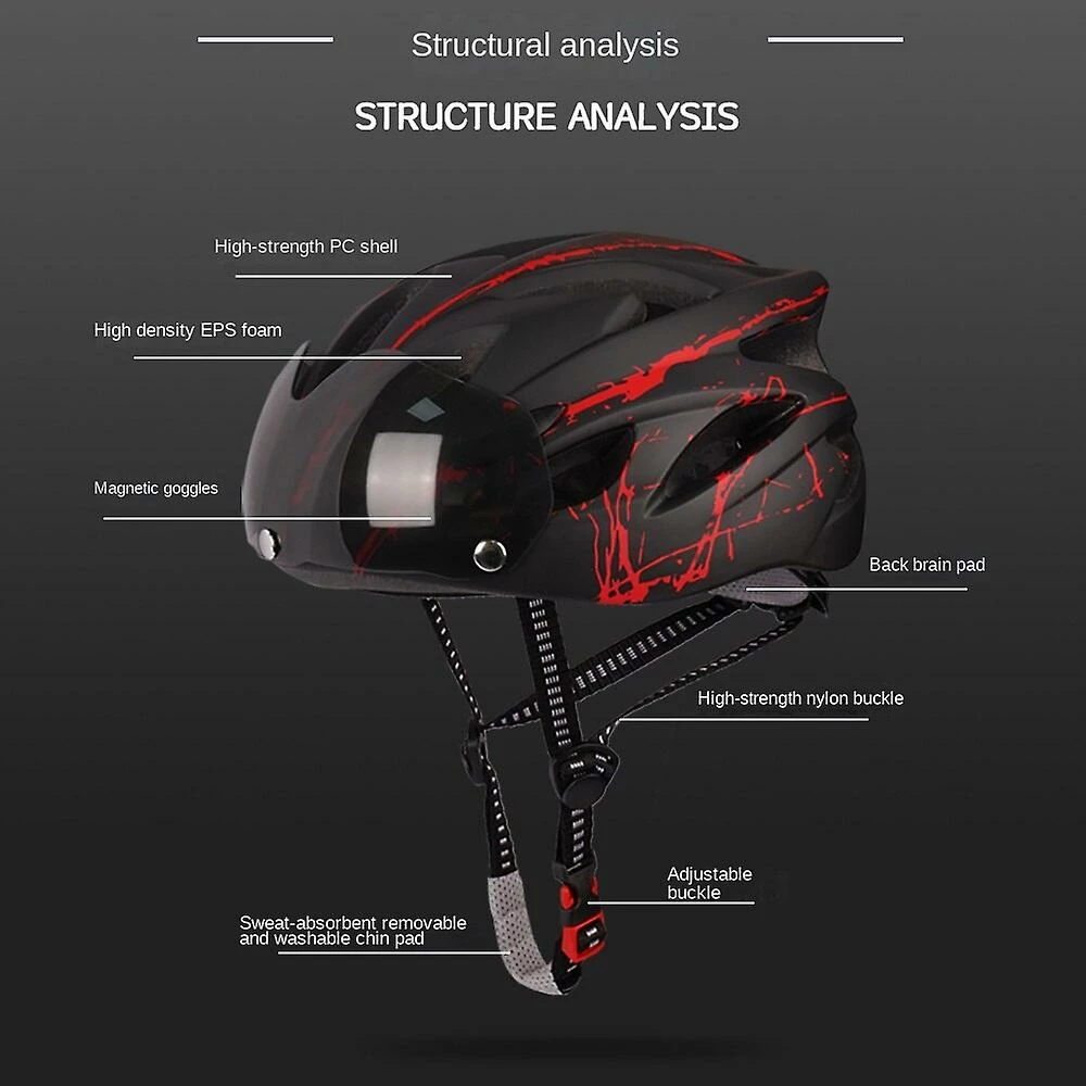 With magnetic suction lens, the helmet can protect the eyes. With 18 ventilation holes on the top, it is not stuffy and hot