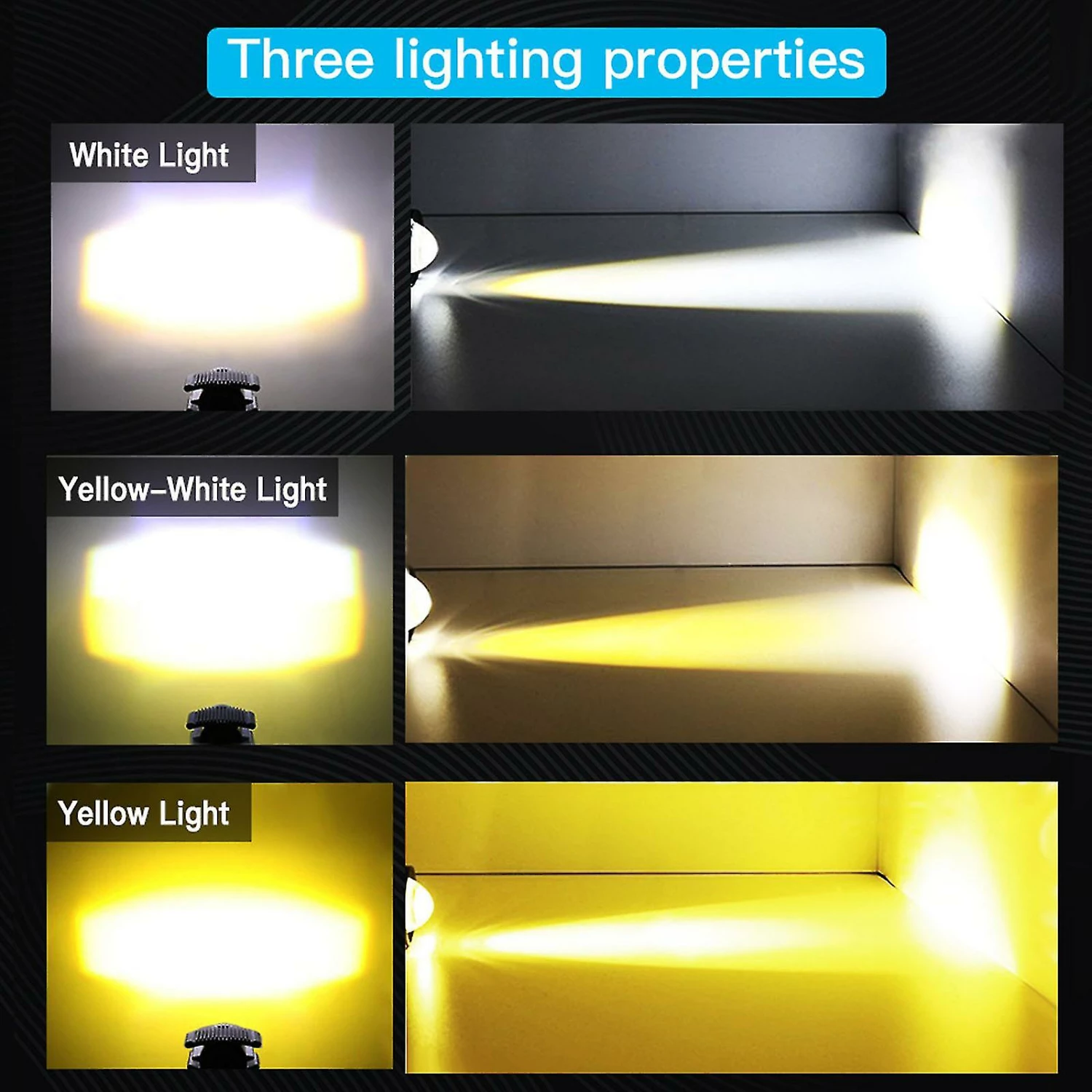 3 light mode:yellow light(low beam),yellow light and white light,white light(far beam).