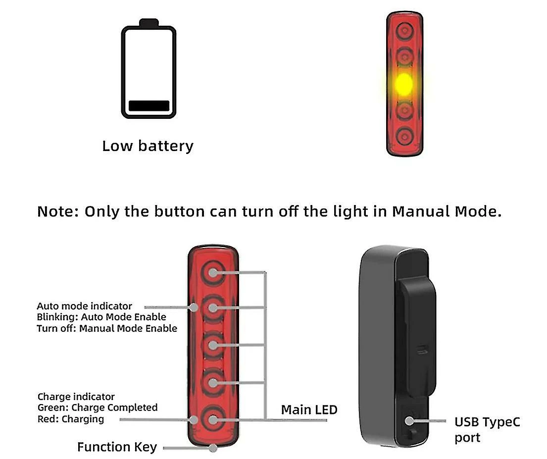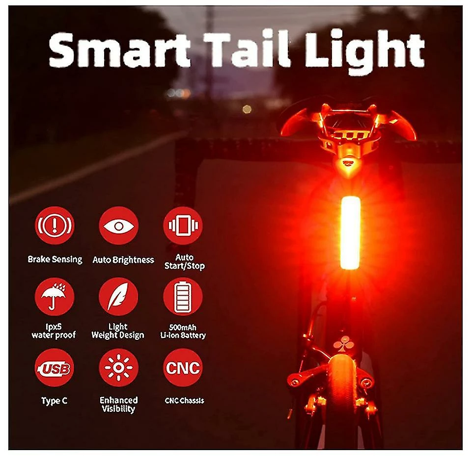 Unbranded Rear Bike Light, Usb Rechargeable Led Lamp, Smart Bicycle Back Light, Waterproof