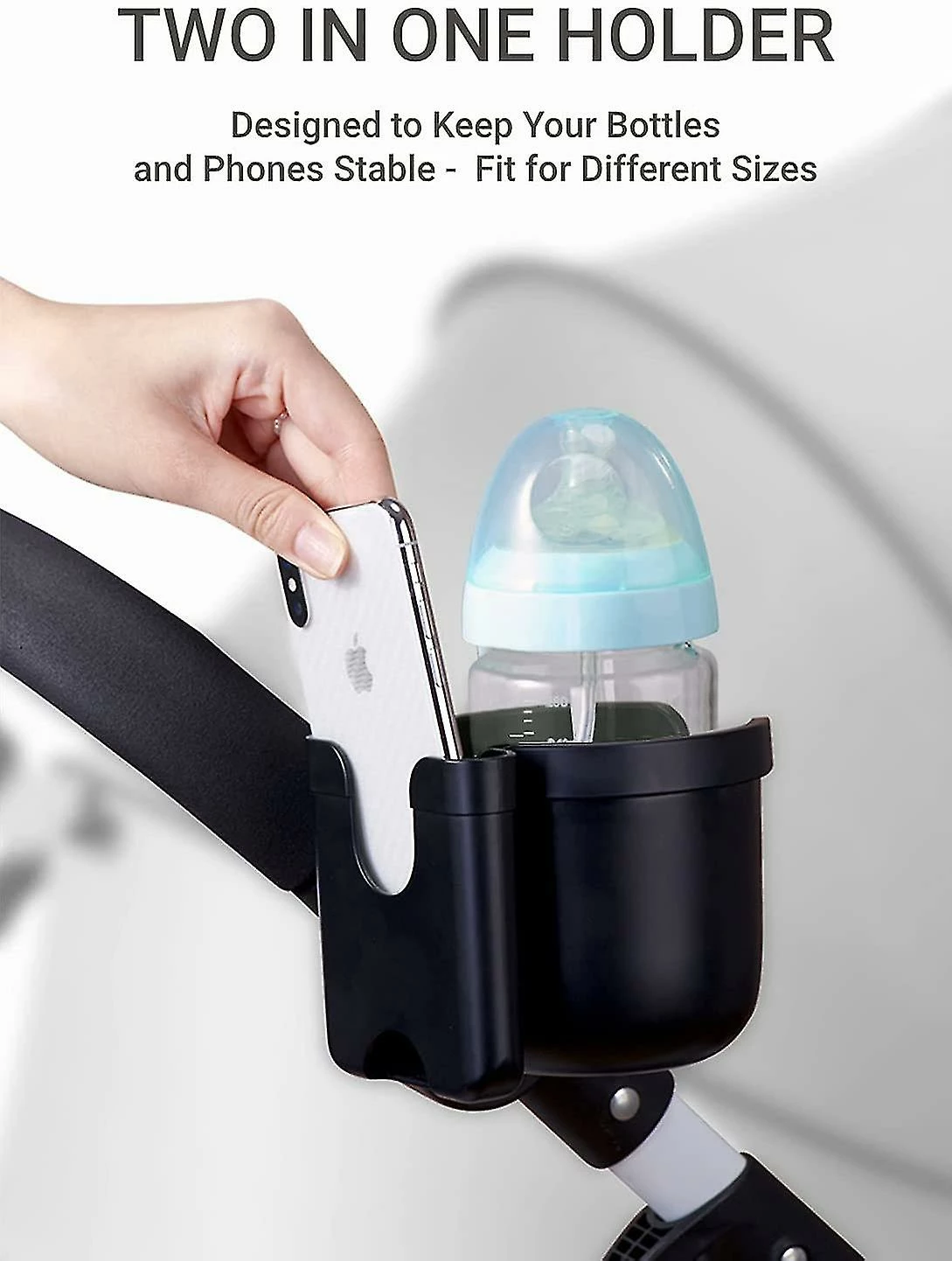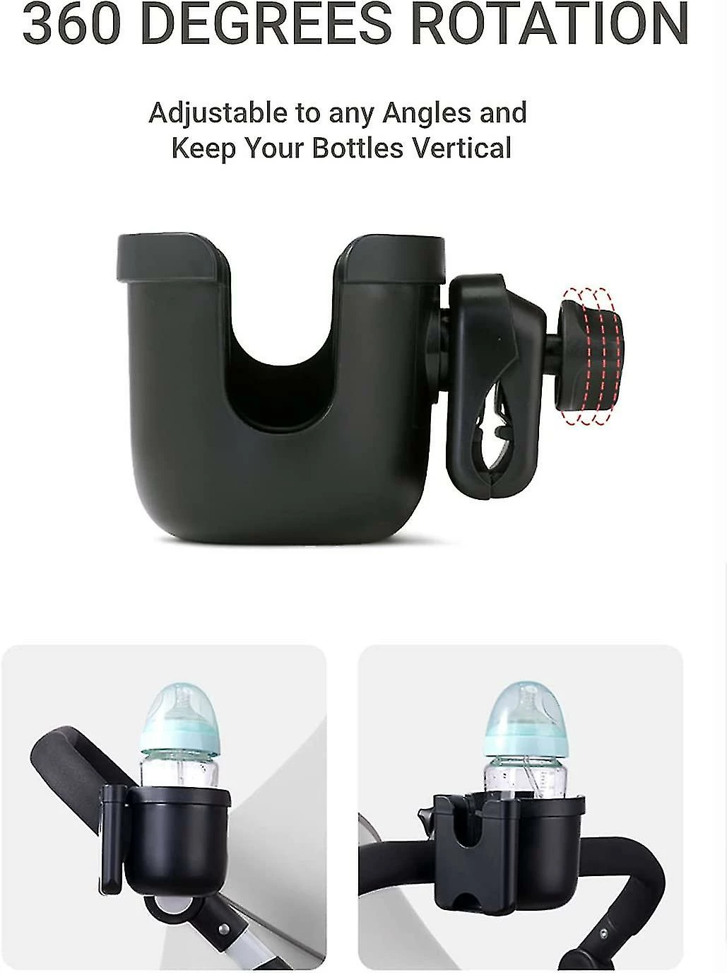 Anti-slip Design:The nut lock has a TPR non-slip pad. And 4 elastic fixing strip at the bottom of the baby pushchair cup holder, ensure that cups can keep steady in the pram cup holder even on the rough road. It can prevent the liquid from spilling out of the cup^