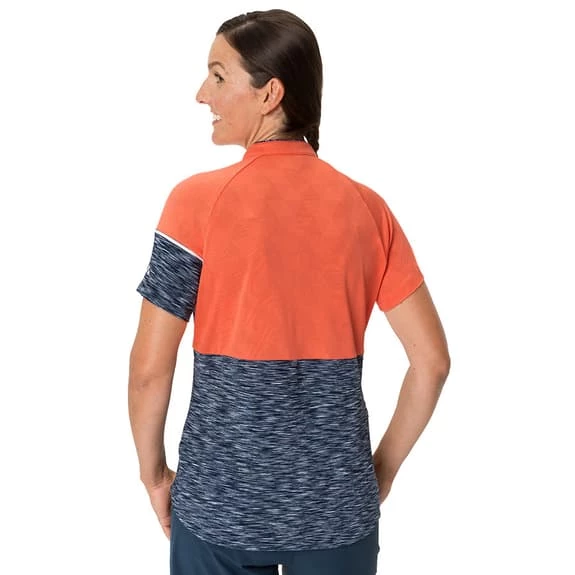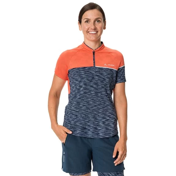 The Vaude Altissimo jersey with a high collar, short front zipper and a small zippered pocket is comfortable to wear. The material, which is certified according to the strict bluesign environmental standard, offers maximum functionality. Recycled polyester is mostly used in production: the Altissimo women’s shirt has a good ecological conscience. The Vaude Green Shape label represents an ecological and functional product made of sustainable materials.