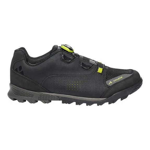 The Vaude AM Downieville Tech MTB shoes are optimised for mountain biking, especially in Cross-Country. Their robust construction features a polyurethane shell, plus a polyester mesh fabric (partially recycled) that promotes proper ventilation at all times. The inner sole has a reinforcement in the areas of greatest pressure when pedaling, as well as a removable insole. The Vaude AM outsole has a V-Flow 6 stability rating and is made of a SUPtraction T rubber compound for optimal support and durability. Nylon reinforcement throughout the sole contributes to efficient power transmission to the pedalboard. The BOA L6 closure system, easily adjustable in a simple one-handed movement, provides a simple, millimetric fit in seconds.