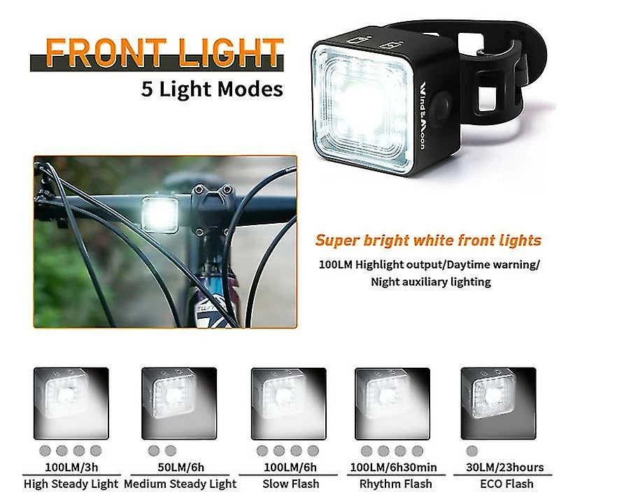 Vention Bike Lights, Usb Rechargeable Front And Rear Lights With 5 Lighting Modes, Ip66 Waterproof / 120lm Brake Light / 2000m Warning Distance Bike Lights Se